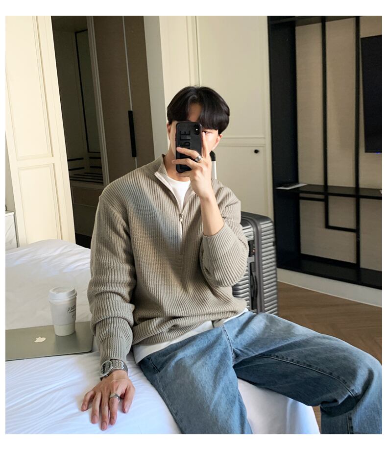 ハーフジッパーセーター ハーフジッパー セーター メンズ バージョン 若者 ラフ ハンサム ルーズ スタンドカラー セーター 秋冬 ファッション シンプル 無地 ジャケット オータム 秋物 ウィンター 冬物 ソリッドカラー BLUU6813502899