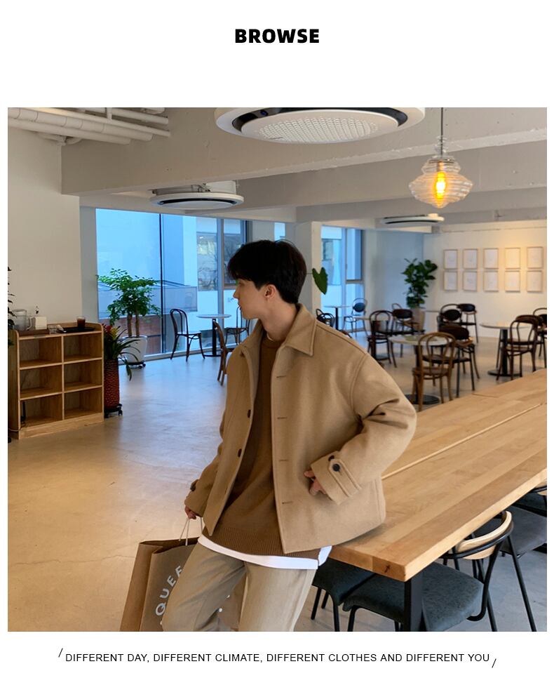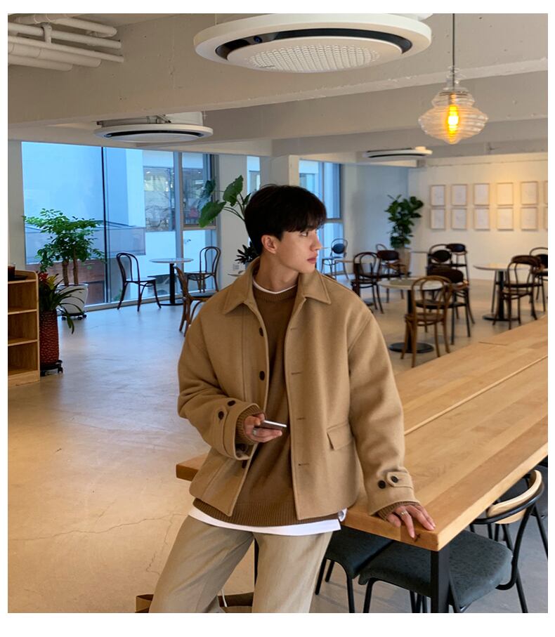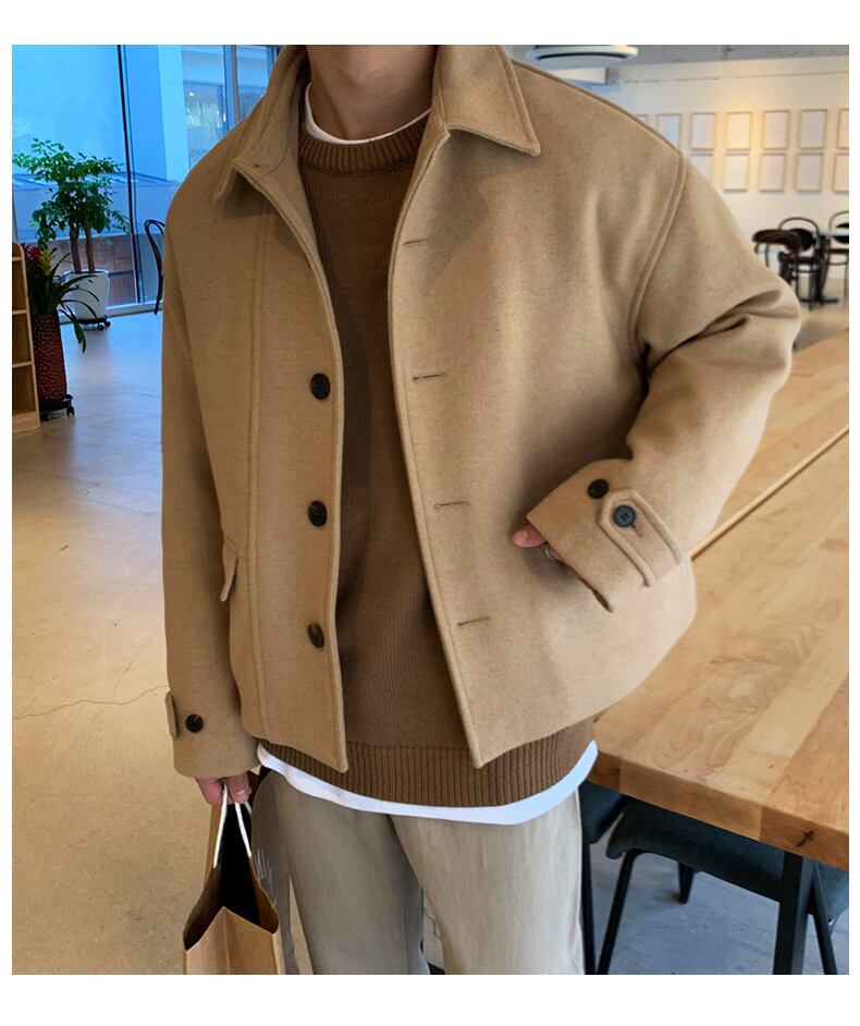 ウール ジャケット メンズ 秋冬 ショート エイン スタイル ジャケット メンズ 冬 ハイエンド ウール トップス トレンド イン カジュアル オールマッチ オータム 秋物 ウィンター 冬物 BLUU60573229304