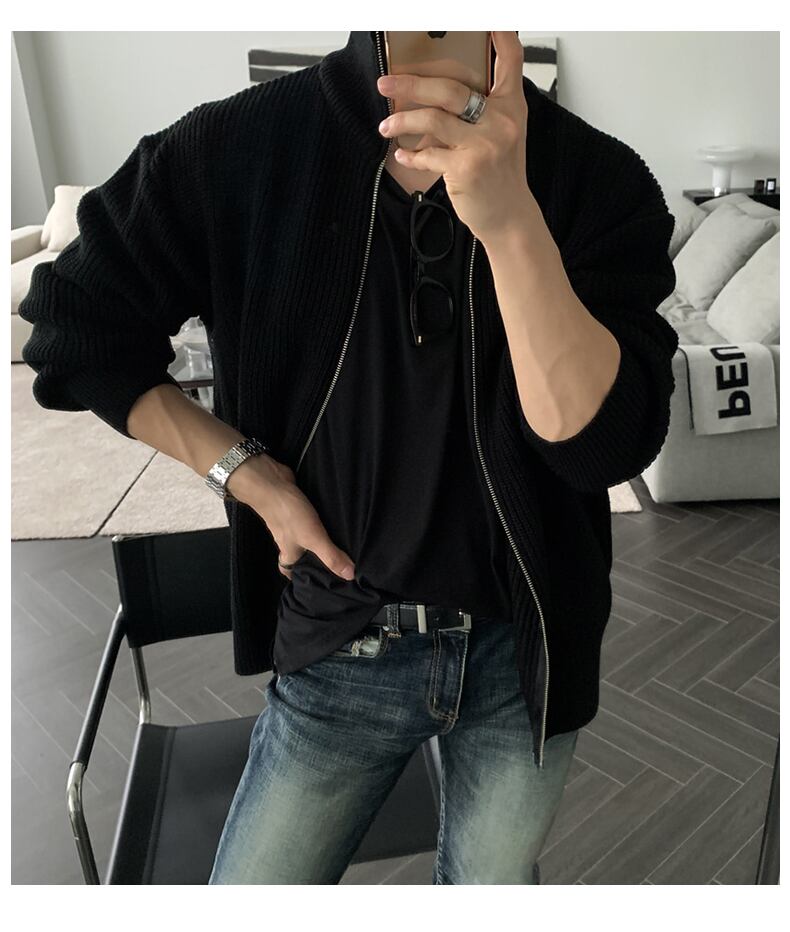 春秋ニットカーディガンメンズオールマッチ糸服メンズコート新作セーターメンズジッパートップインレイジー スプリング 春物 オータム 秋物 BLUU4306847405