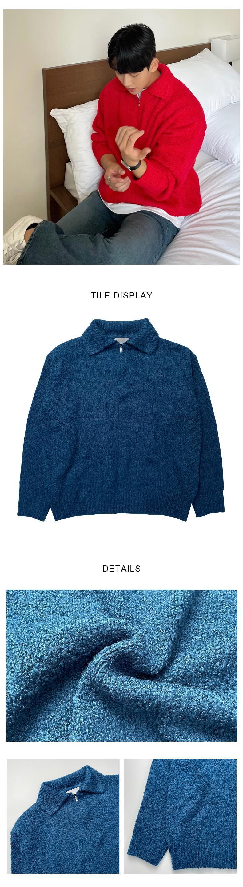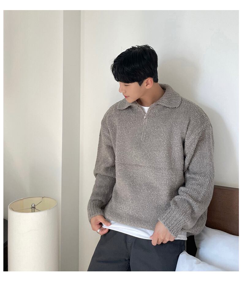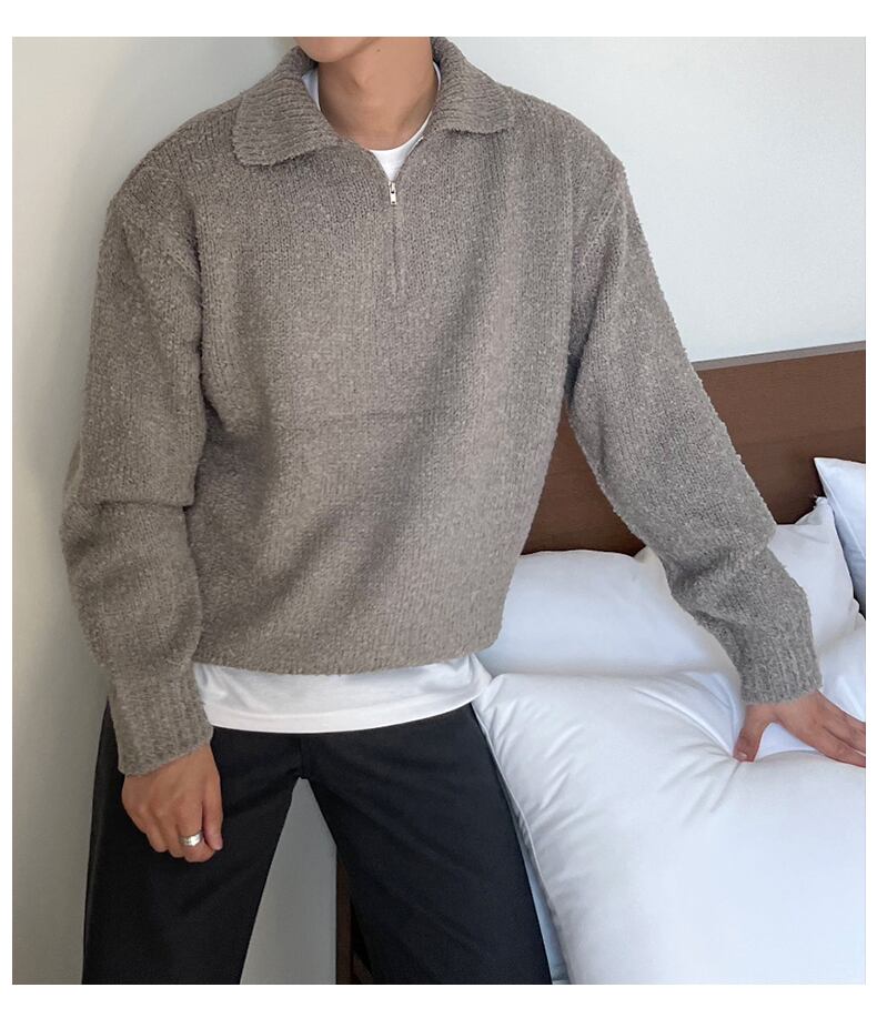 セーター レイジー メンズ ハーフジップ ラペル ジャケット ese 無地 万能セーター ソリッドカラー BLUU87708903987