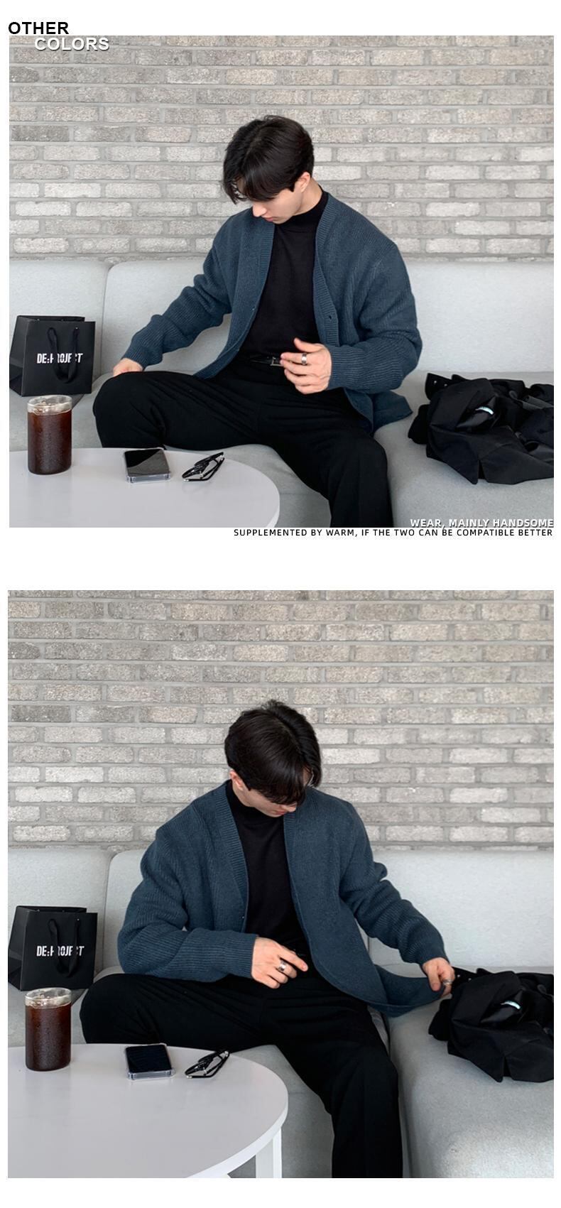 潮ブランド怠惰なスタイルのニットカーディガンセータージャケットメンズ秋バージョンカジュアルルーズオールマッチ無地セーター オータム 秋物 ソリッドカラー BLUU16112846954