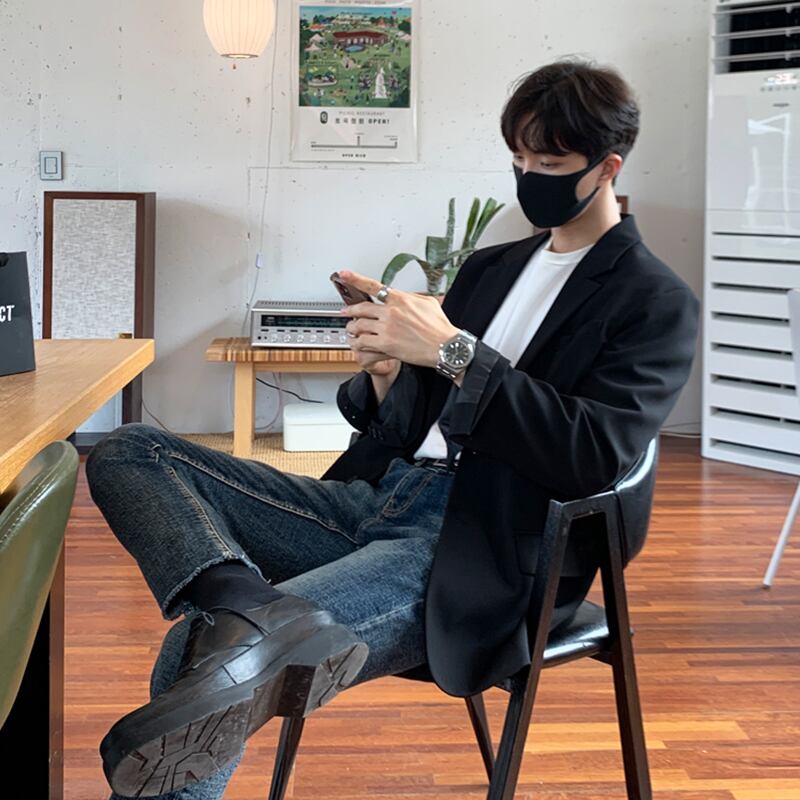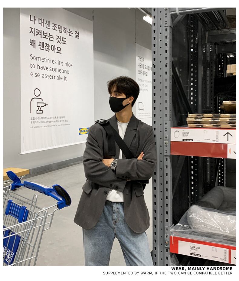 ニッチな高級感のあるメンズスーツ秋冬トレンドカジュアルスモールスーツバージョンファッションオールマッチコート オータム 秋物 ウィンター 冬物 BLUU11852579104