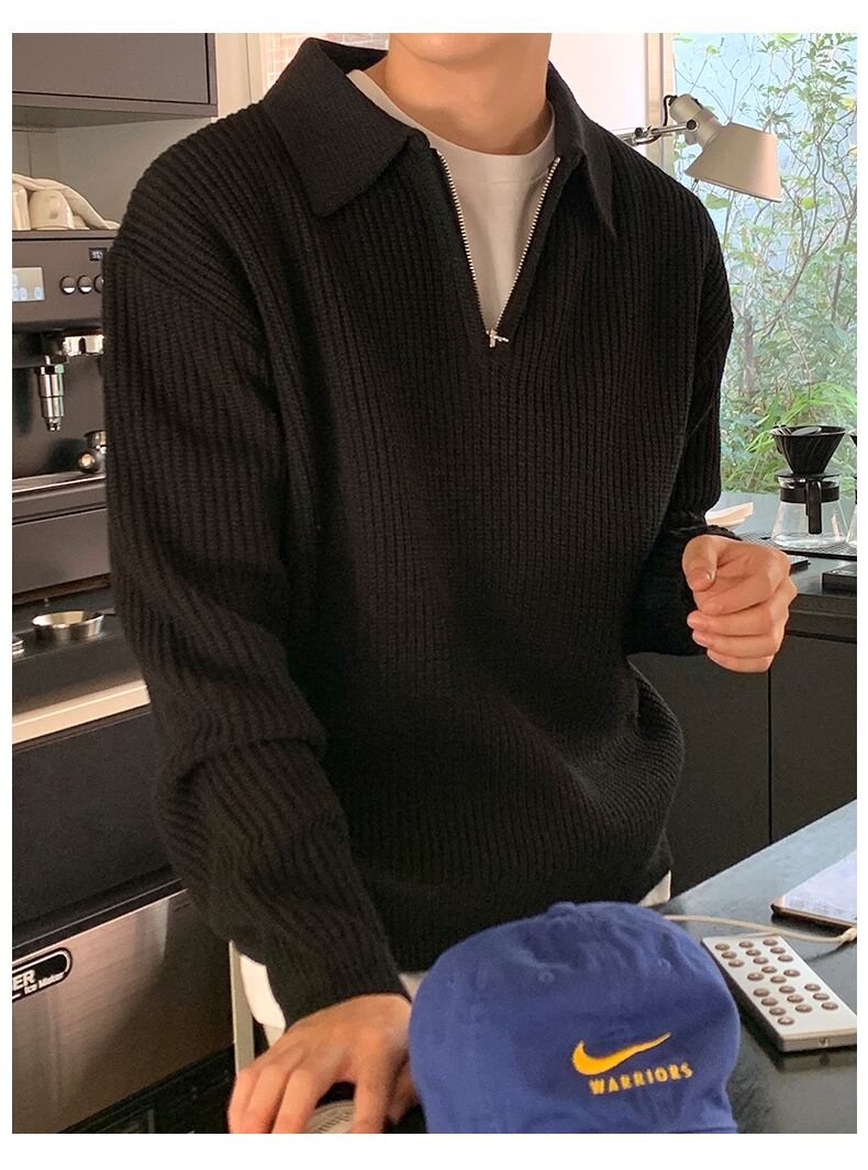 秋と冬のハイエンドセーターメンズバージョンの潮のブランドニッチハーフジッパーラペルセーターインシンプルカジュアルジャケット オータム 秋物 ウィンター 冬物 BLUU35526969652