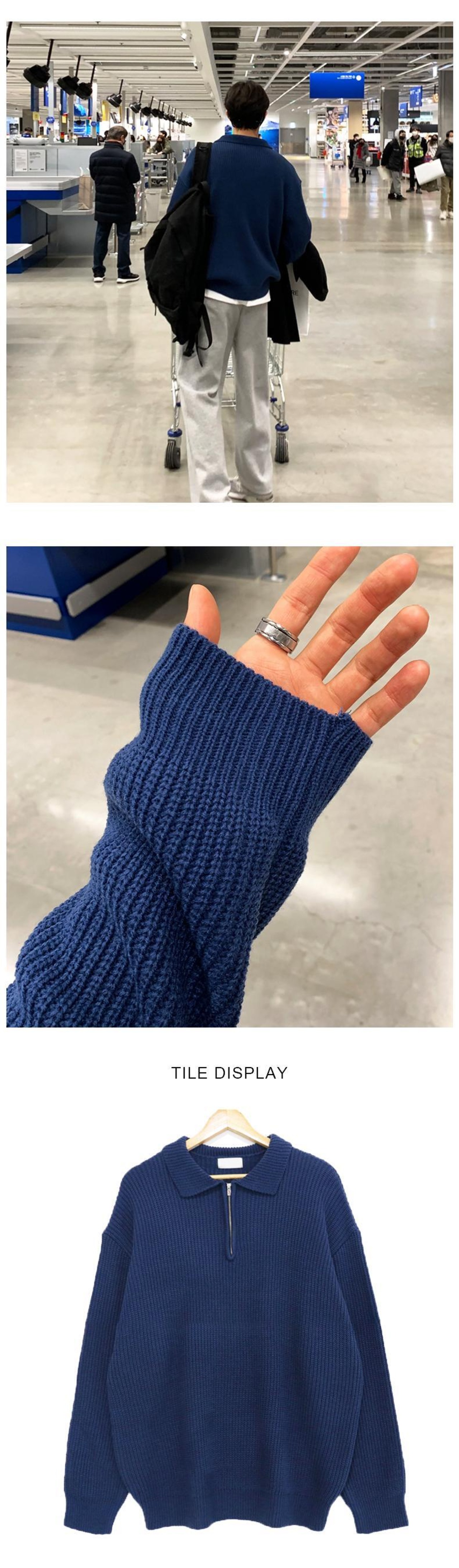 ese Lazy Wind セーター メンズ トレンド ラフィアン ハーフジップ ニット セーター 秋 シンプル ゆったり 無地 ジャケット オータム 秋物 ソリッドカラー BLUU98316453688