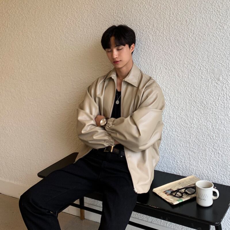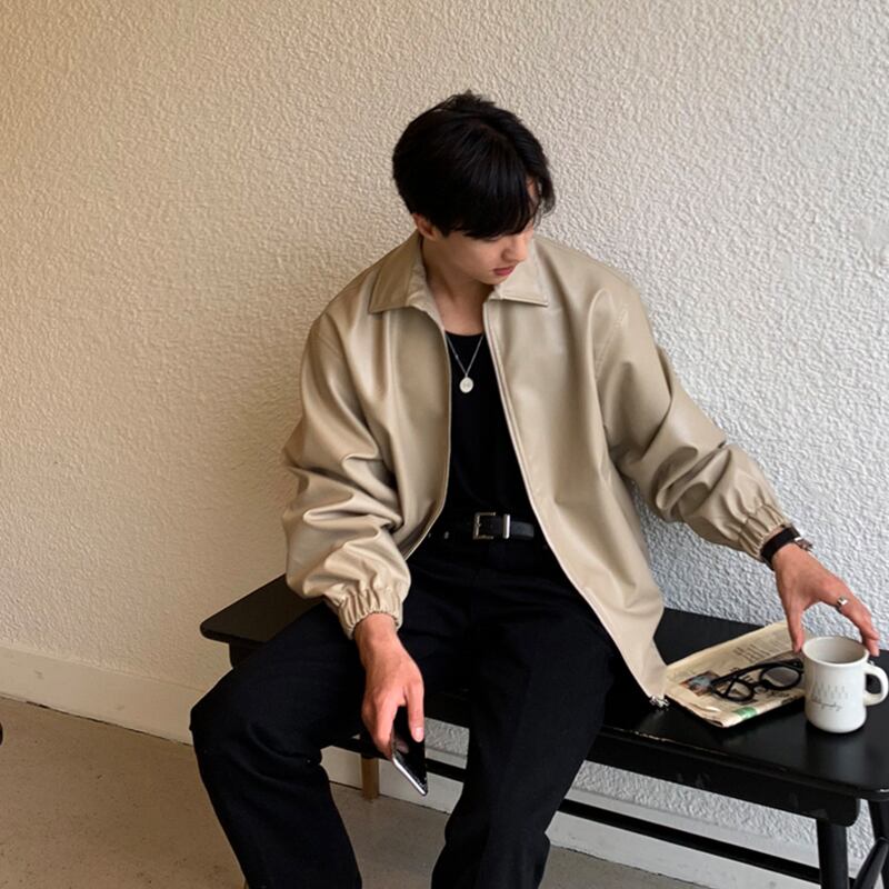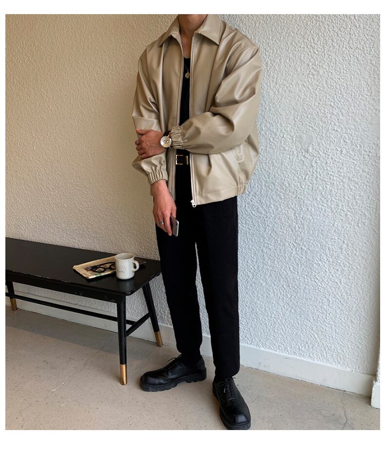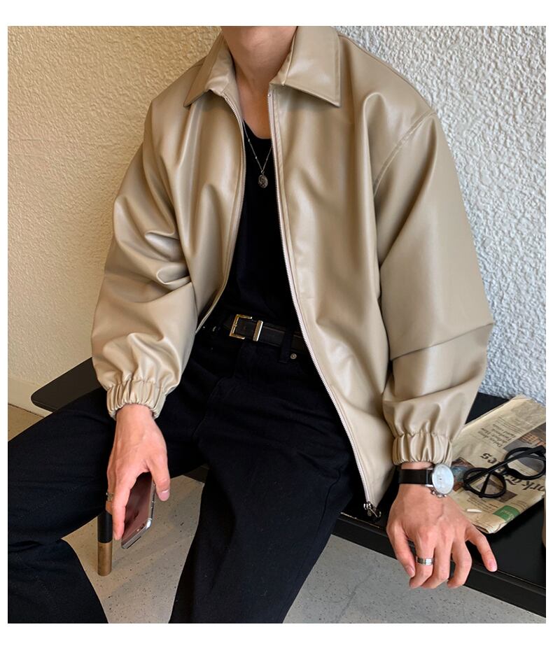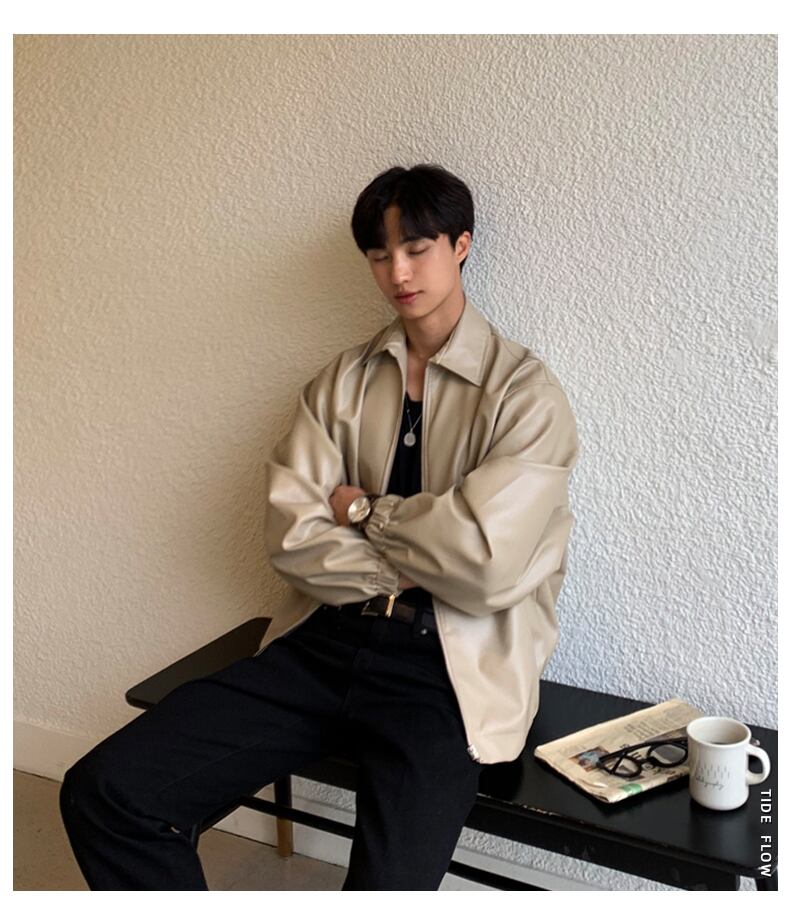 ジャケット メンズ レザージャケット ルフィアン ハンサム 潮流 ブランド メンズ レザージャケット 秋冬 カジュアル ファッション ルーズ ラペル トップス オータム 秋物 ウィンター 冬物 BLUU77656280860