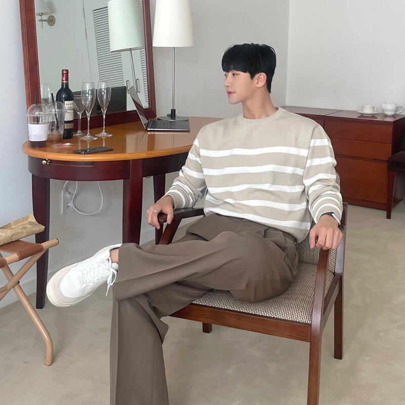 ストライプ セーター メンズ ハイエンド ルーズ レトロ ese レイジー ニッチ ニット セーター カジュアル ルーズ コート BLUU58476669982