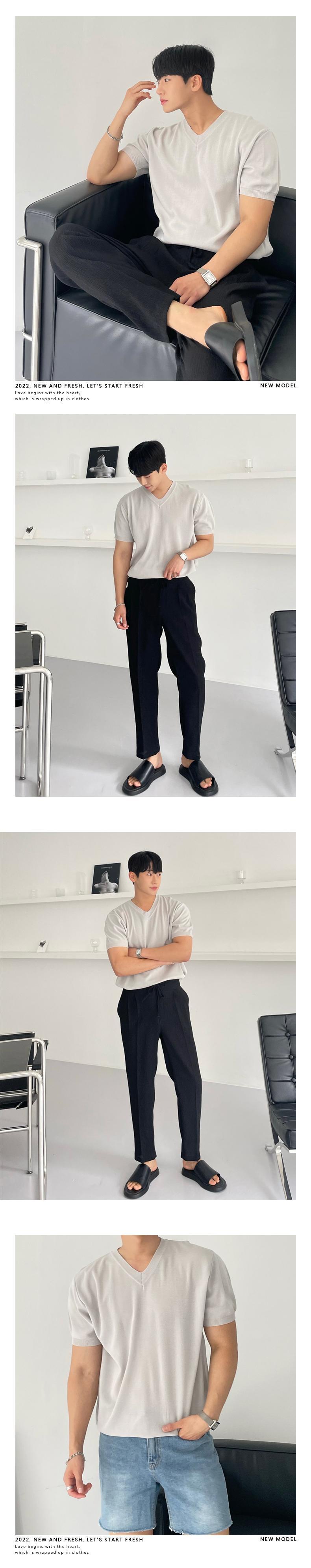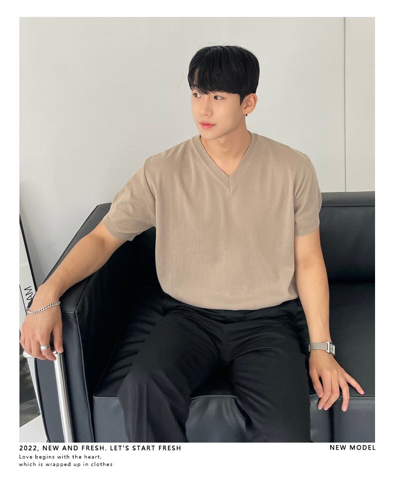 2022 夏新作半袖 tシャツメンズ人気イントレンディなファッションニッチカジュアル薄い v ネックニットトップ サマー 夏物 Vネック BLUU82965859290