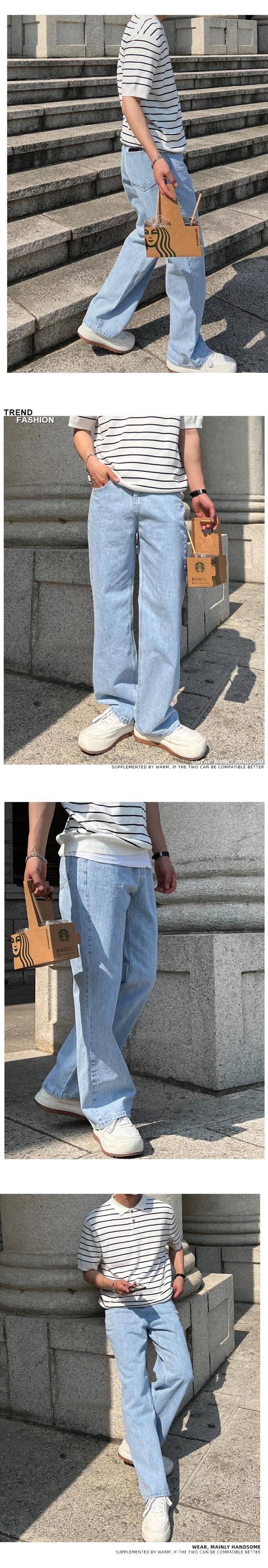 ジーンズ メンズ ストレート ルーズ ドレープ オールマッチ パンツ バージョンのタイド ブランド イン カジュアル ファッション シンプル 無地 ズボン ソリッドカラー BLUU16847708922