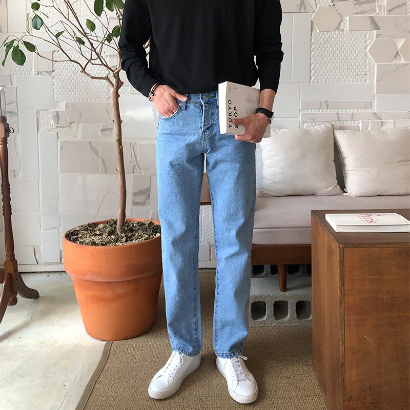 ジーンズ メンズ ストレート ゆったり ワイドパンツ 夏 トレンド カジュアル シンプル 無地 オールマッチ パンツ サマー 夏物 ソリッドカラー BLUU85523178755