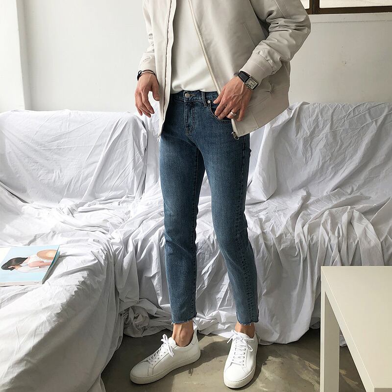 ジーンズ メンズ サマー ese レトロ イン スキニー 九点パンツ タイド ブランド シンプル スタイル 無地 オールマッチ カジュアル パンツ 夏物 ソリッドカラー BLUU95053623183