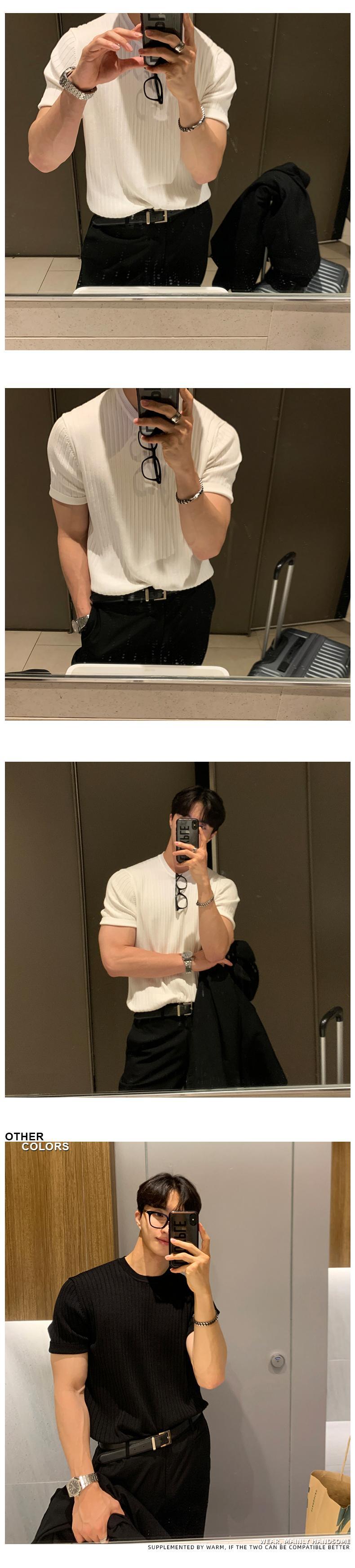 Tシャツ メンズ 半袖 トレンド ブランド オールマッチ スリムフィット 2022 丸首 ニット トップス イーエスイン カジュアル ファッション Tシャツ Oネック BLUU14989521012