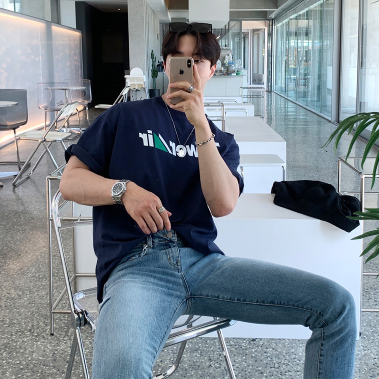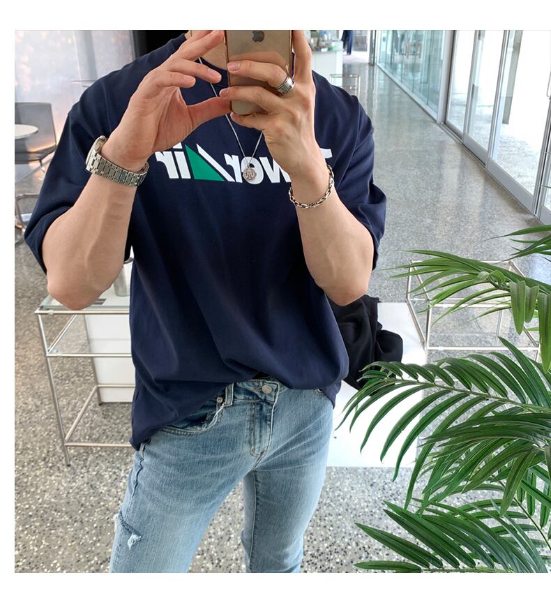 クラインブルー半袖Tシャツメンズ夏潮ブランドニッチデザインプリントラウンドネックTシャツの半袖トップバージョン サマー 夏物 Oネック BLUU29612077101