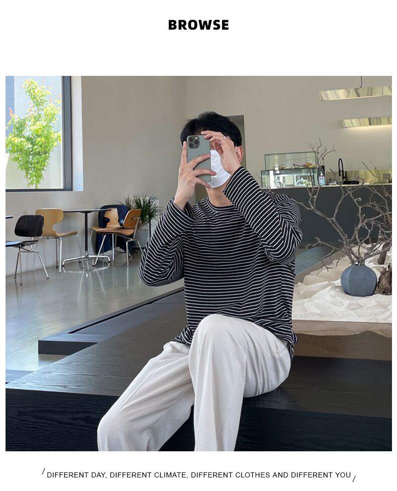 長袖 tシャツ タイド ブランド メンズ バージョン ニッチ デザイナー ストライプ トップス ユース カジュアル ルーズ オールマッチ ボトムス シャツ ロング BLUU71078882154