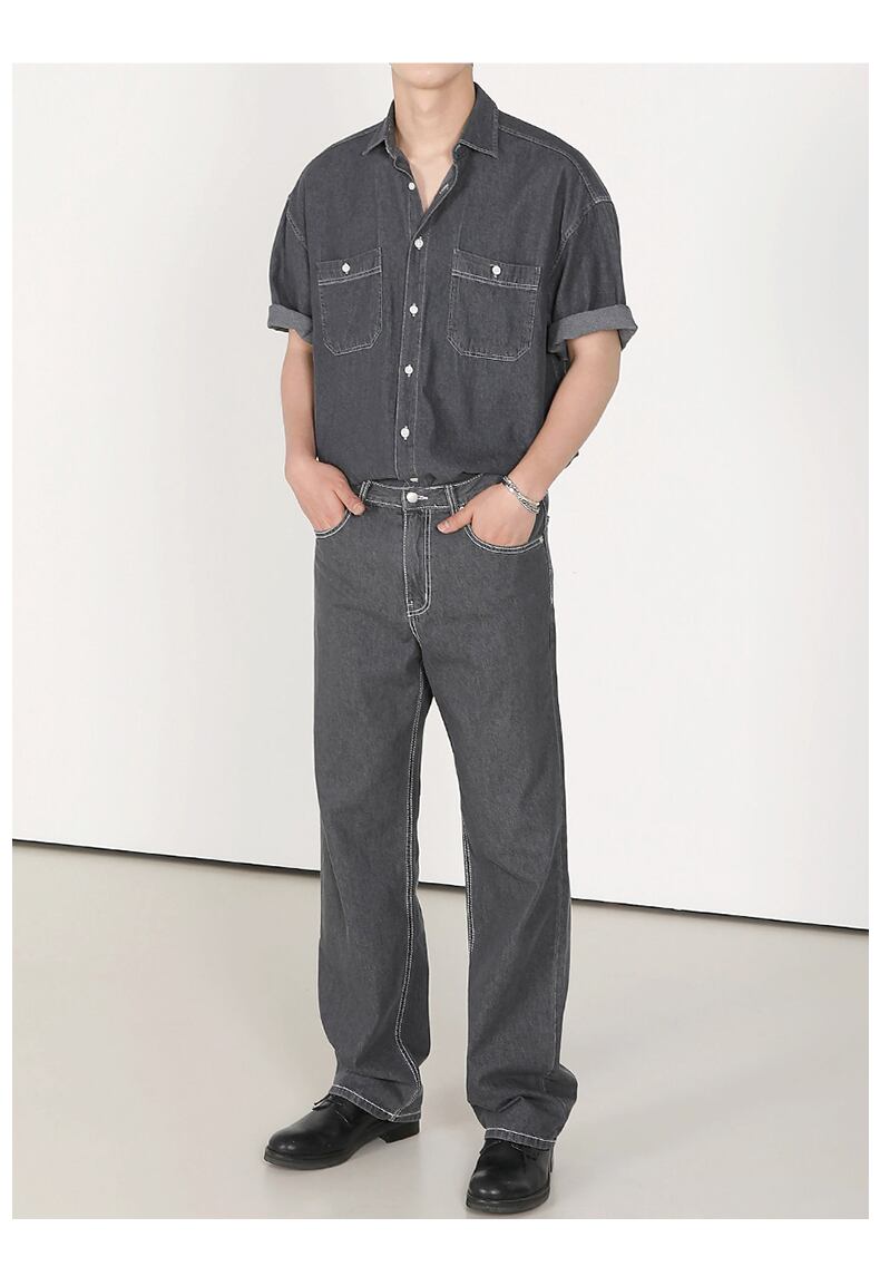 潮ブランド シャツ メンズ 半袖 夏 ルーズ 薄手 ハイエンド カジュアル デニム シャツ バージョン 乱暴なハンサム ファッション トップ サマー 夏物 BLUU4068923855