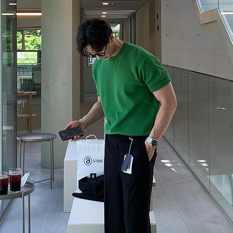Tシャツ 半袖 メンズ ハイストリート インスタイド ブランド デザイン センス ニット トップス サマーイン 香港風 カジュアル ルフィアン ハンサム tシャツ 夏物 BLUU96907484771