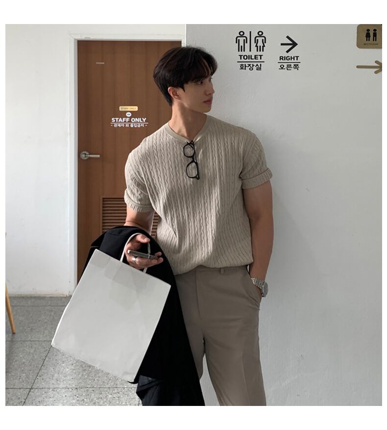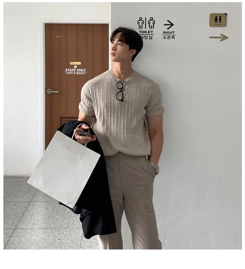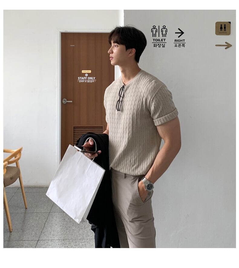 センス tシャツメンズ潮ブランド夏半袖 2022 新バージョンインカジュアル無地ワイルドニット tシャツ サマー 夏物 ソリッドカラー BLUU19162167317