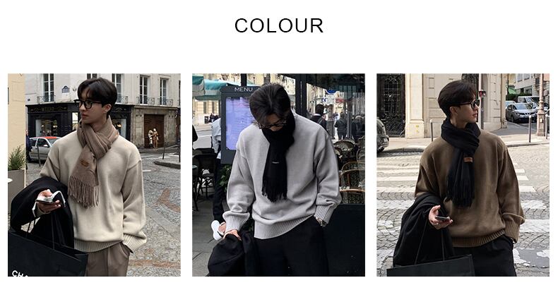 オータムセーター メンズ ese 怠惰風 シンプル 無地 ニットセーター 万能 トレンド ゆったりセーター 秋物 ソリッドカラー BLUU41174661844