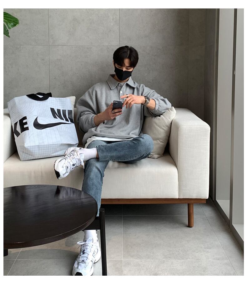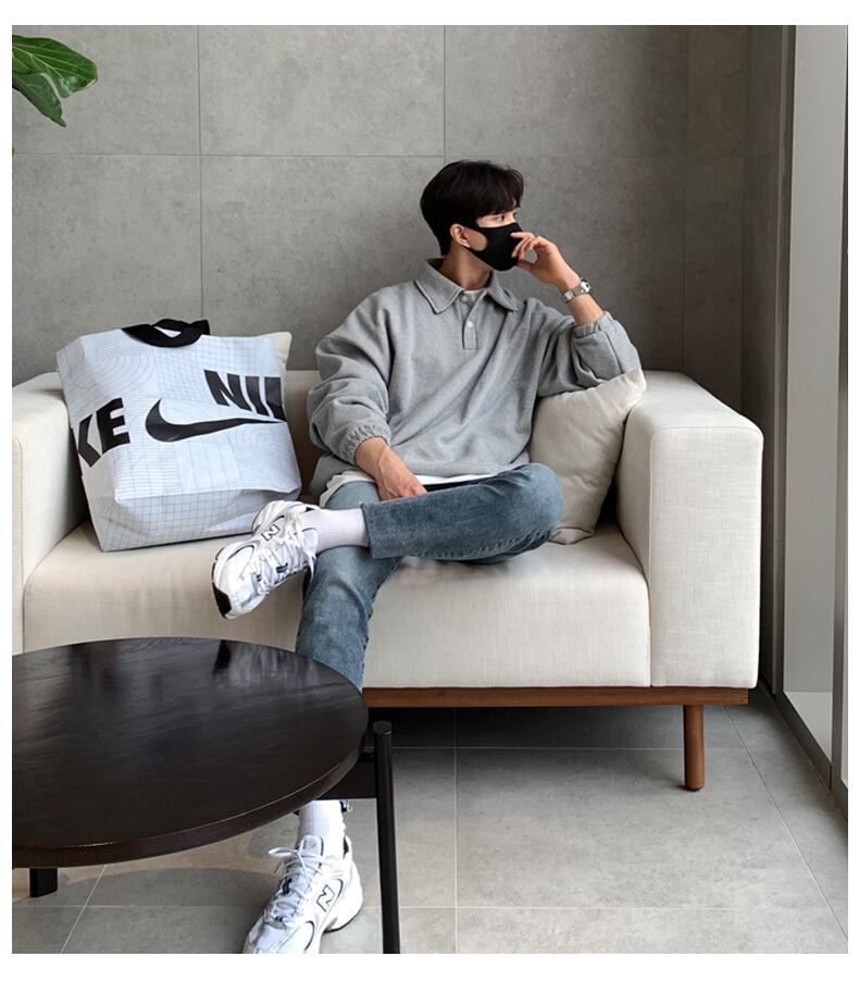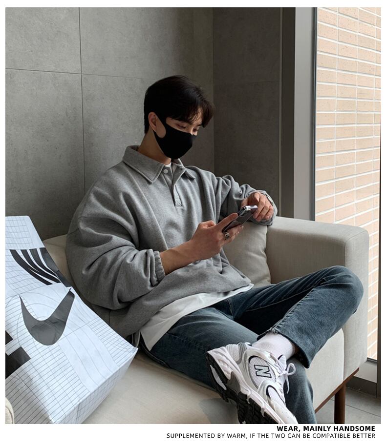 セーター メンズ ハイエンド 秋バージョン トレンド カジュアル シンプル 無地 ルーズ オールマッチ ラペル ポロシャツ ジャケット オータム 秋物 ソリッドカラー BLUU5592878312