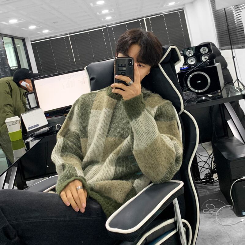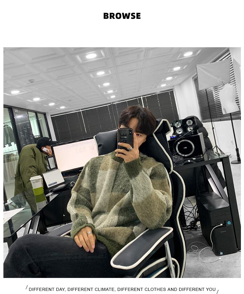 セーターの新しい 2022 人気の男性の冬のハイエンド センス ニッチ配色ニット セーター バージョン トレンド オールマッチ コート ウィンター 冬物 BLUU30459112715