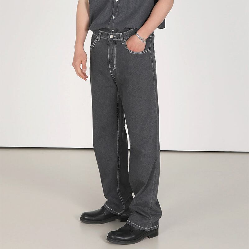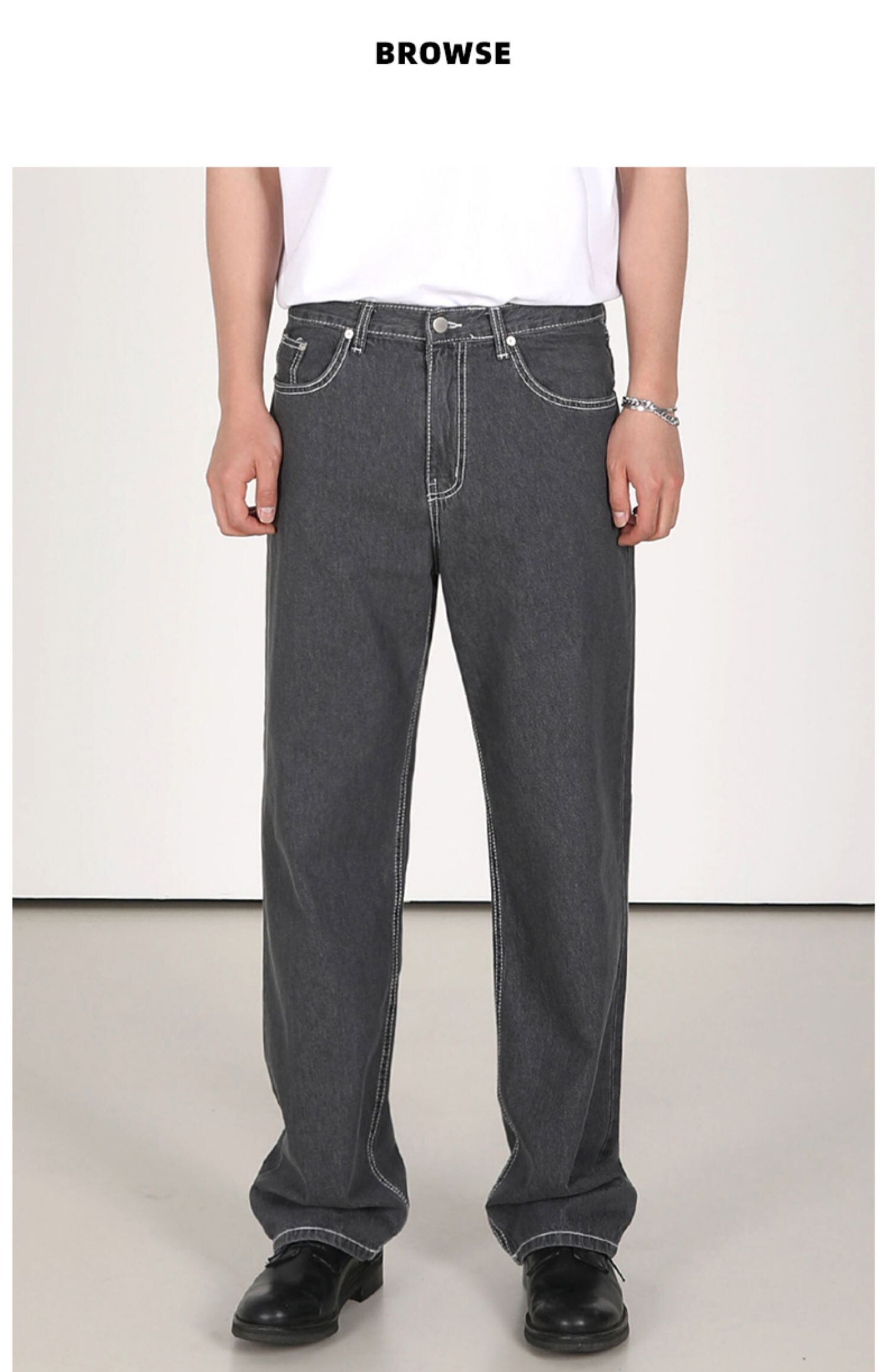 ジーンズ メンズ ゆったり ストレート パンツ ハイストリート インタイド 若者 ファッション ワイドレッグ パンツ 香港風 レトロ パンツ ワイドパンツ BLUU43750168132