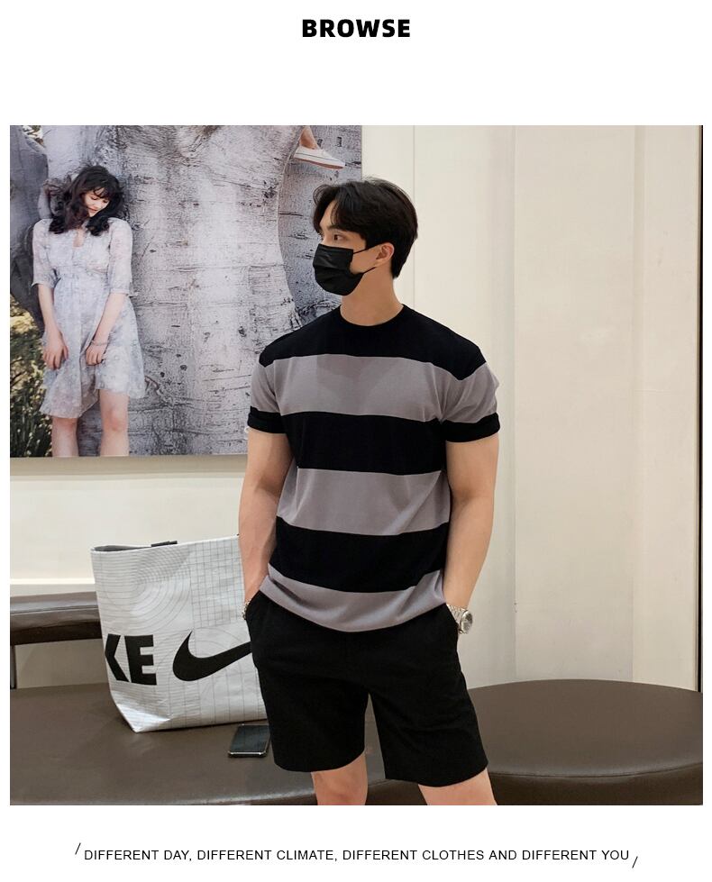 半袖Tシャツ メンズ インタイドブランド 香港風 レトロデザイン ストライプトップ ese 怠惰なカジュアル ニットTシャツ BLUU14786974667
