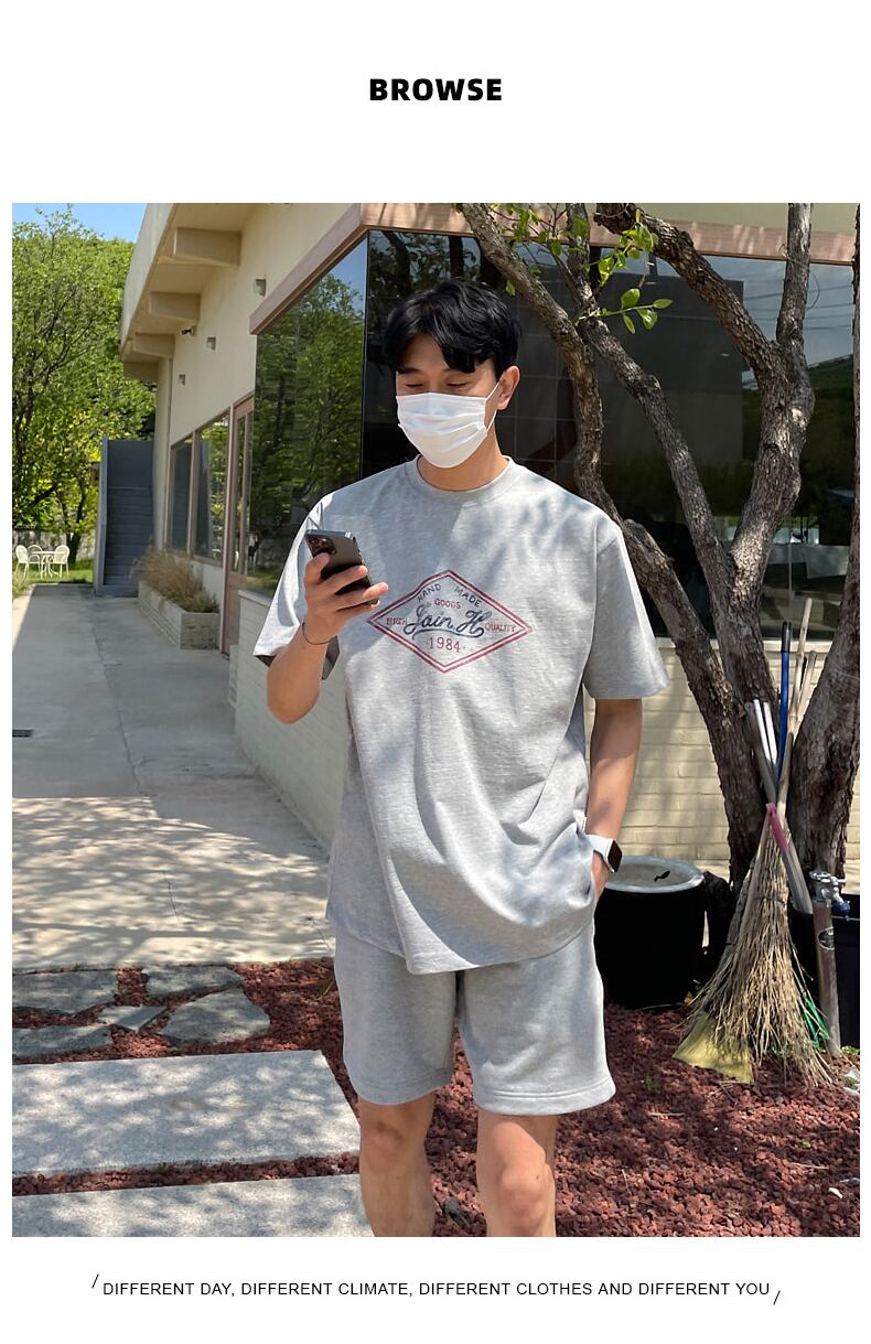 スーツ メンズ ハイエンド タイド ブランド スポーツウェア ツーピース 夏 ファッション シンプル 半袖 スーパー 五点式 パンツ スウェットパンツ サマー 夏物 BLUU19456429604