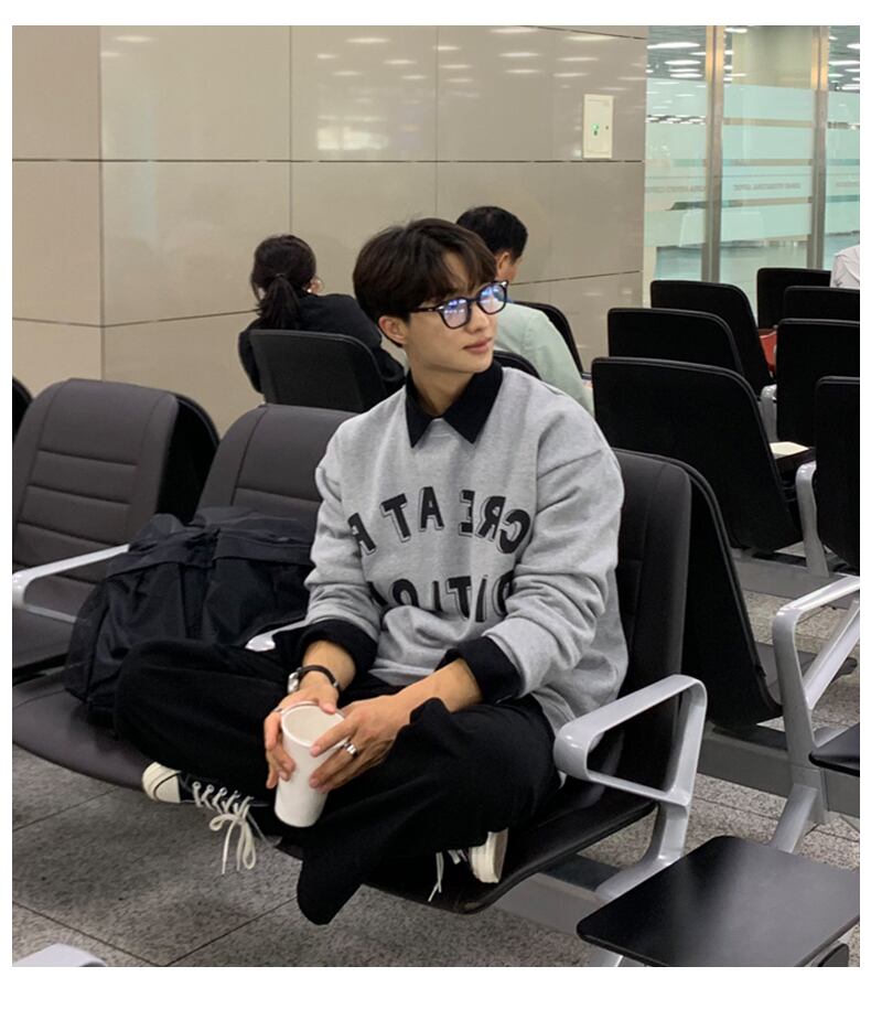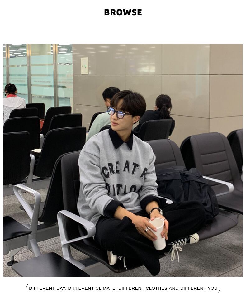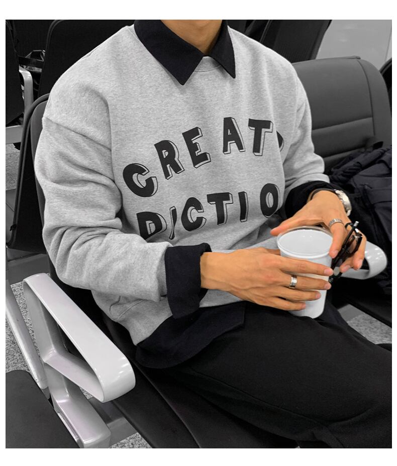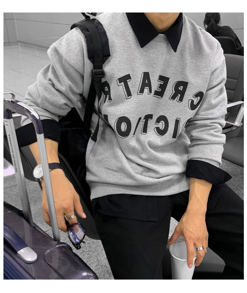 ポロ セーター メンズ ニッチ デザイン ファッション プリント ラペル トップ 秋 トレンド カジュアル オールマッチ ルーズ コート オータム 秋物 BLUU53327497659