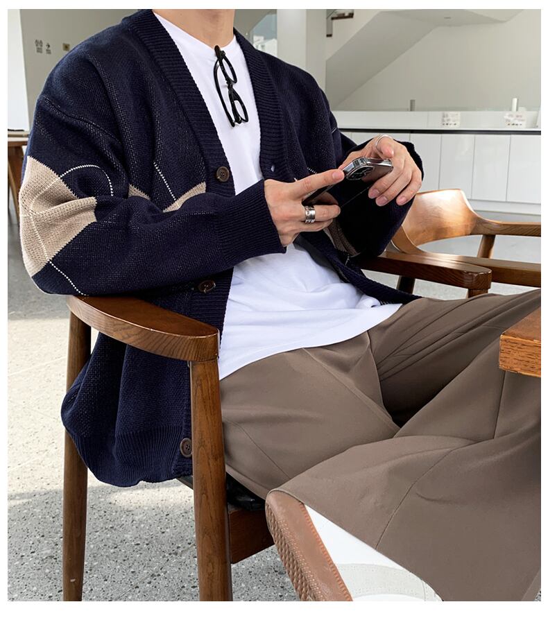ese ニット v ネック カーディガン セーター メンズ 怠惰なスタイル 秋の ins ファッション ルフィアン ハンサム ルーズ オール マッチ ニット セーター ジャケット オータム 秋物 Vネック BLUU14145843562