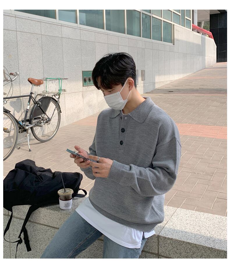 セーター Lazy Sense Men's ese Style Lazy Loose Versatile Lapel Knit Sweater Autumn Coat オータム 秋物 BLUU50436435645