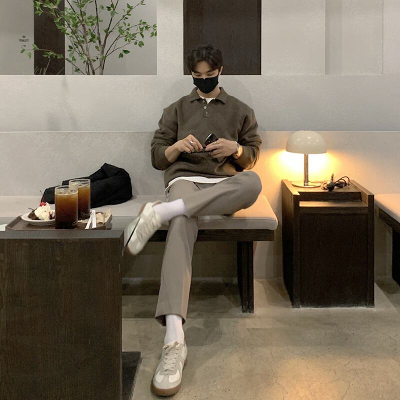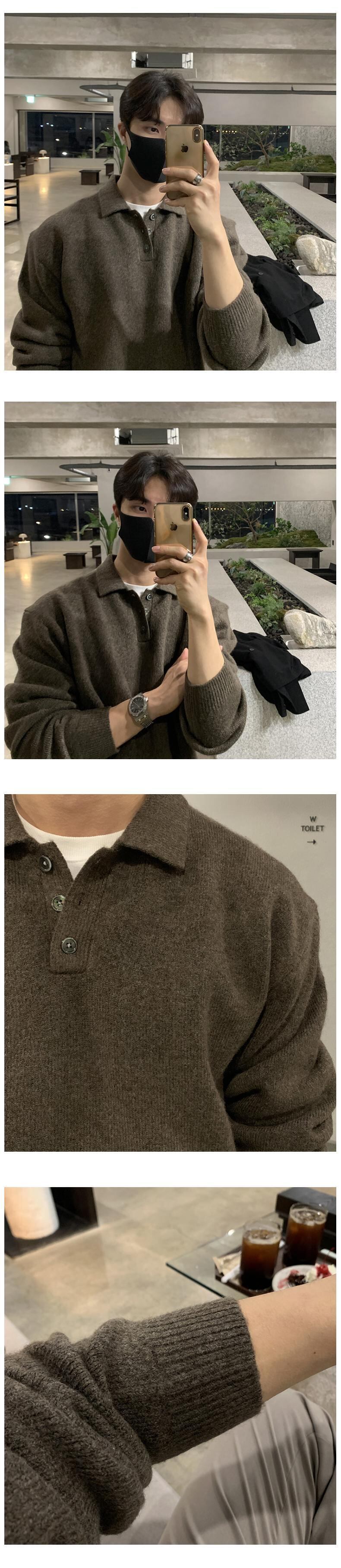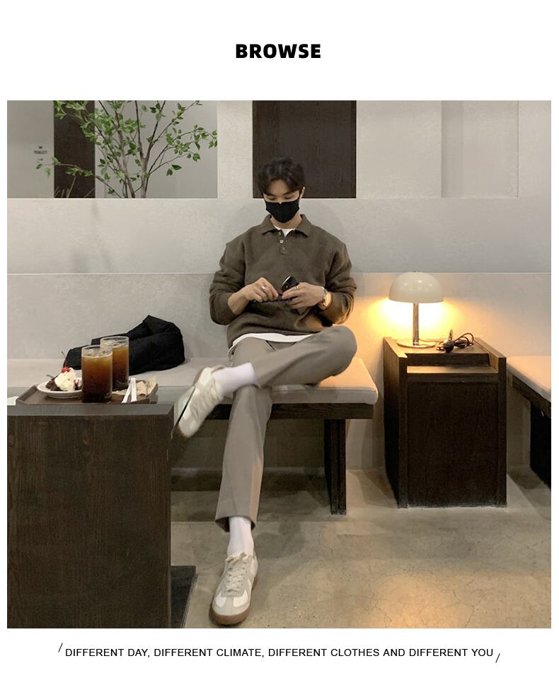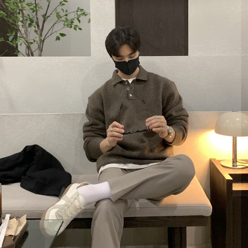 セーター 2022爆発的なメンズトレンドラペルニットセーターeseルースポロシャツジャケット BLUU14557371578