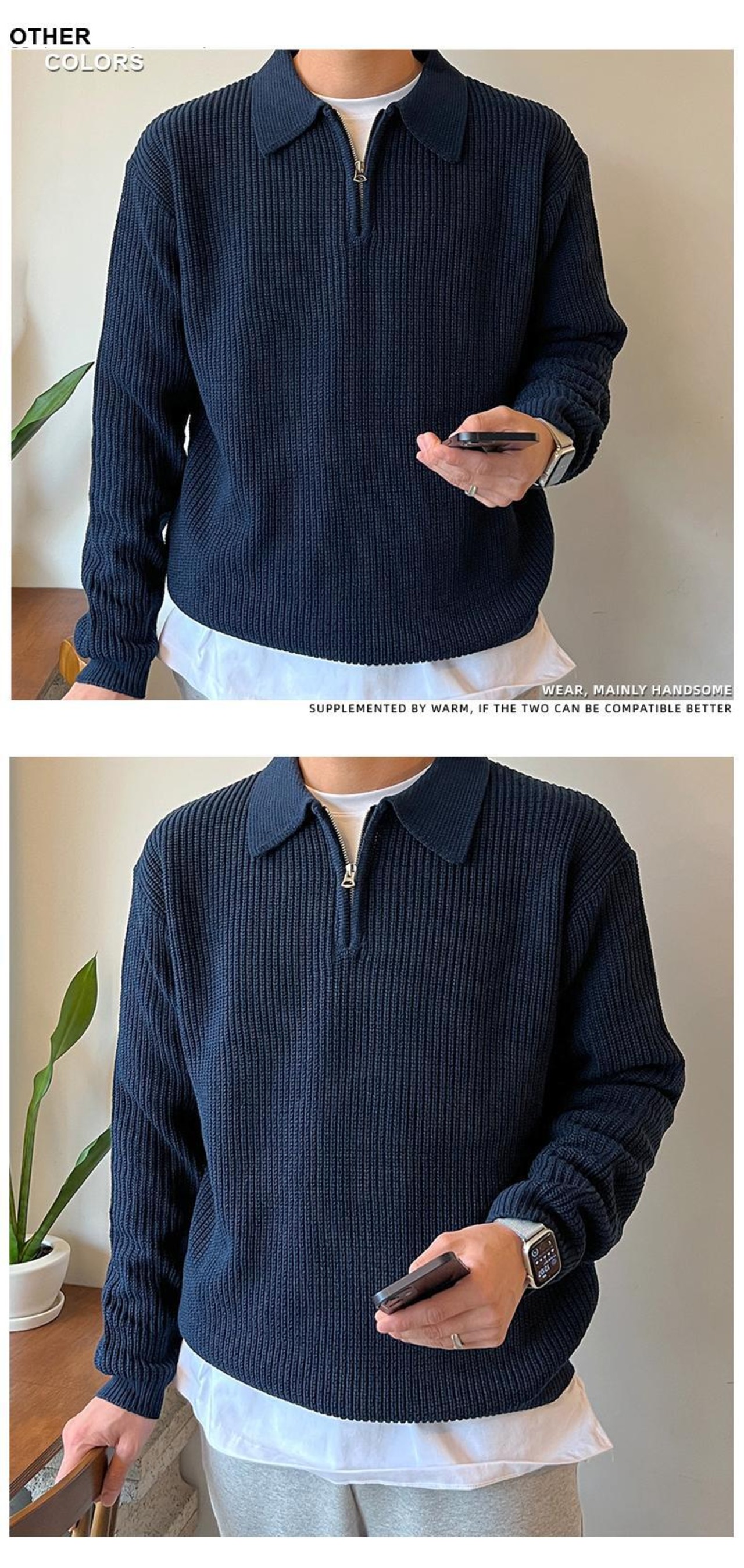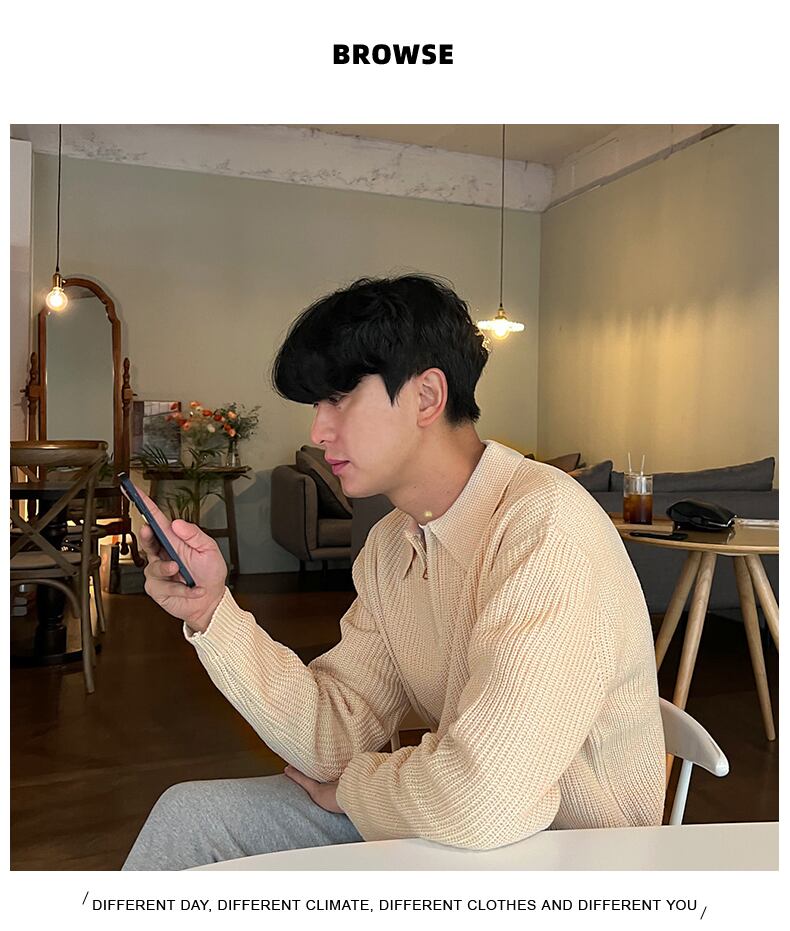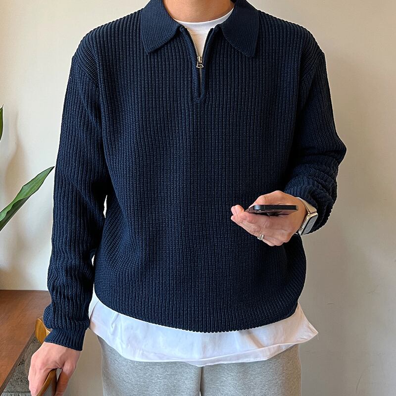 ハーフジッパーセーターメンズ新 2022 スタイル冬のハイエンドラペルセーターバージョンインカジュアルジャケット ウィンター 冬物 BLUU7681358783