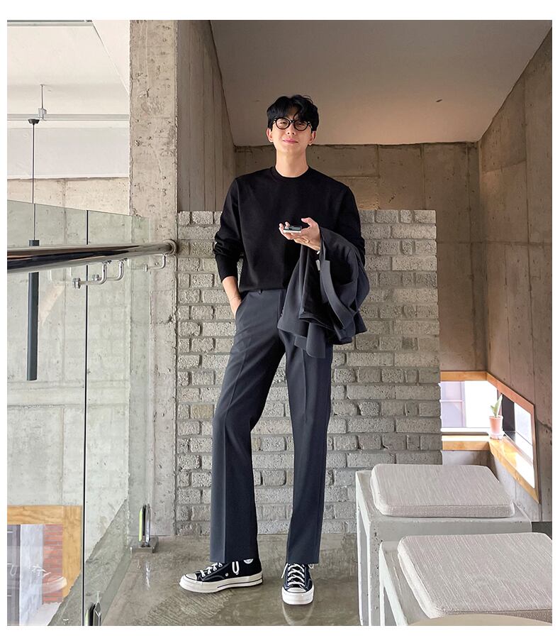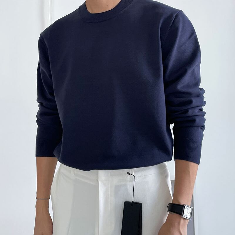 2022 人気の新しいセーターメンズバージョンファッション無地ラウンドネックセーターシンプルルーズオールマッチ底入れシャツ Oネック ソリッドカラー BLUU14145124651