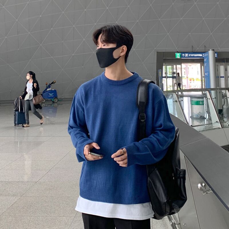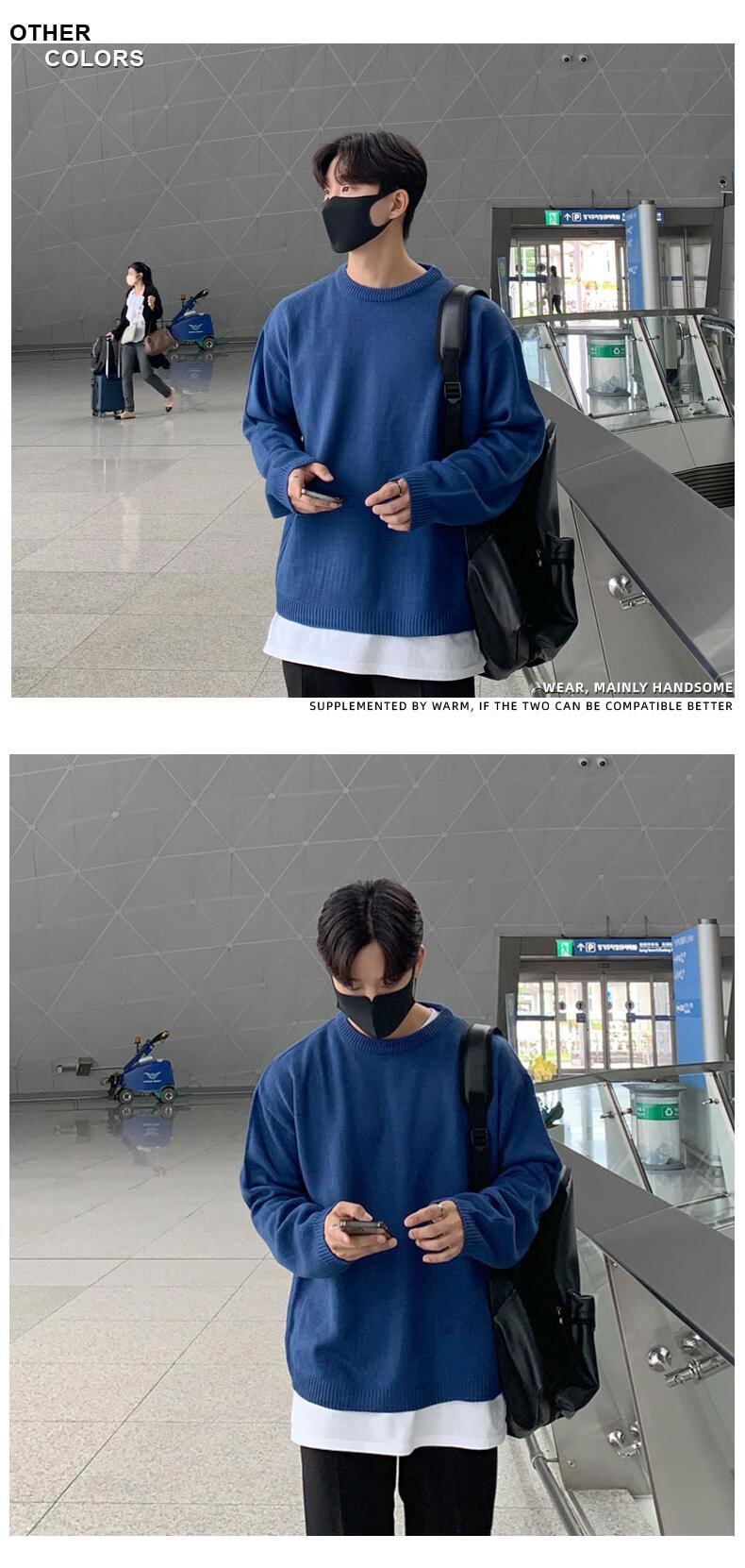 セーター メンズ 秋冬 トレンド ブランド シンプル スタイル カジュアル オールマッチ 無地 ラウンドネック セーター イン ルーズ レイジー セーター オータム 秋物 ウィンター 冬物 Oネック ソリッドカラー BLUU12568420133