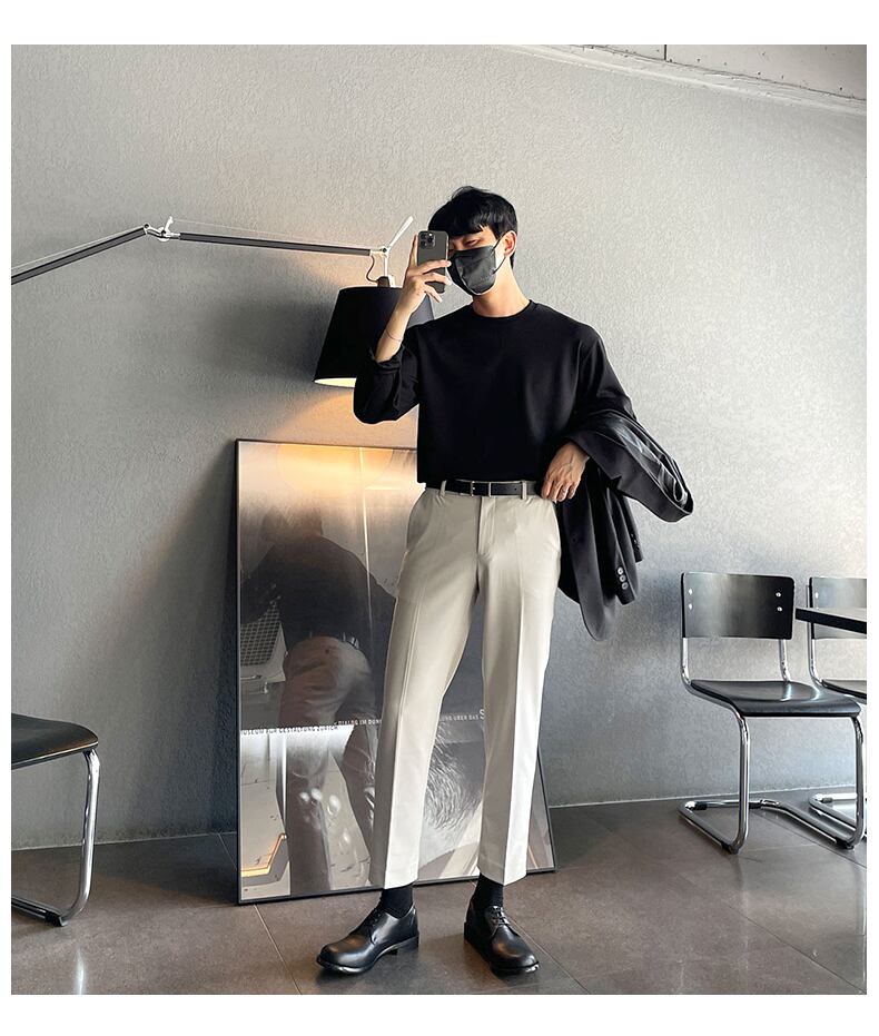 長袖 tシャツ メンズ 秋 ゆったり オールマッチ ボトムス シャツ イン トレンド カジュアル ファッション 無地 tシャツ ロング オータム 秋物 ソリッドカラー BLUU11024375233