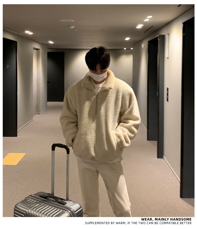 セーター ジャケット ジャケット メンズ 冬 トレンド カジュアル ファッション 増厚 ゆったり オールマッチ ハーフジッパー フリース トップス ウィンター 冬物 BLUU8944546943