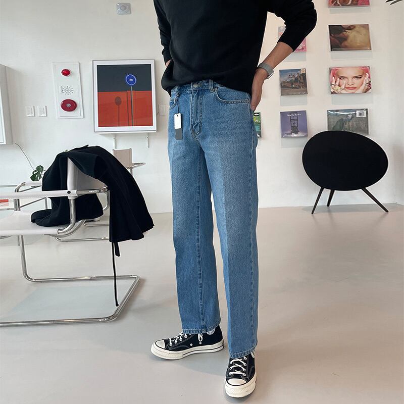 ストレート ジーンズ メンズ 香港スタイル イン トレンド レトロ ワイドレッグ パンツ バージョン カジュアル ルーズ オールマッチ ドレープ パンツ BLUU85308288699