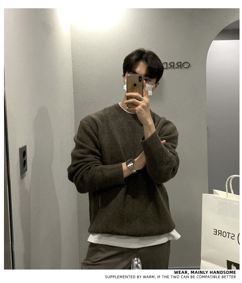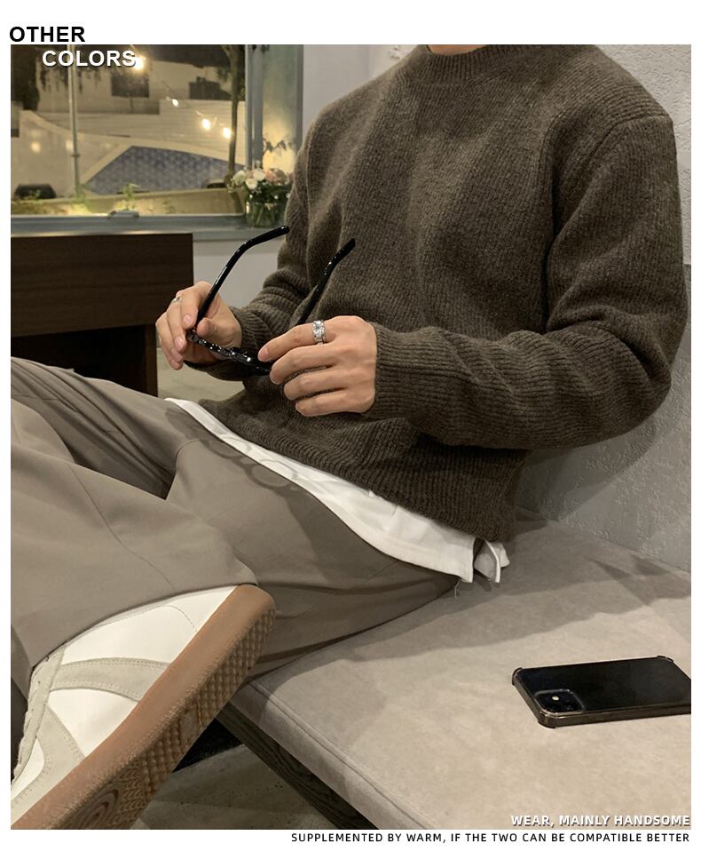 セーター ese レイジー レトロ メンズ 香港スタイル トレンド ゆったり ラウンドネック ニット セーター 秋冬 オールマッチ ジャケット オータム 秋物 ウィンター 冬物 Oネック BLUU98425961452