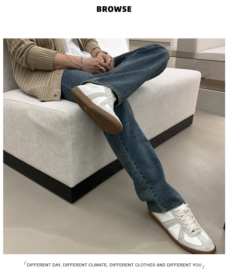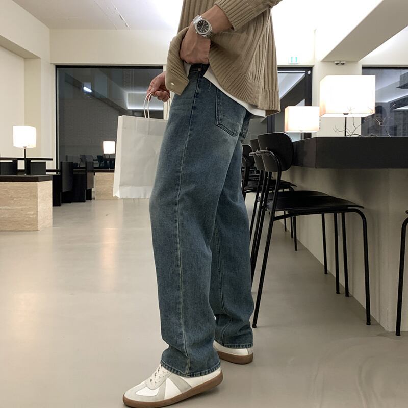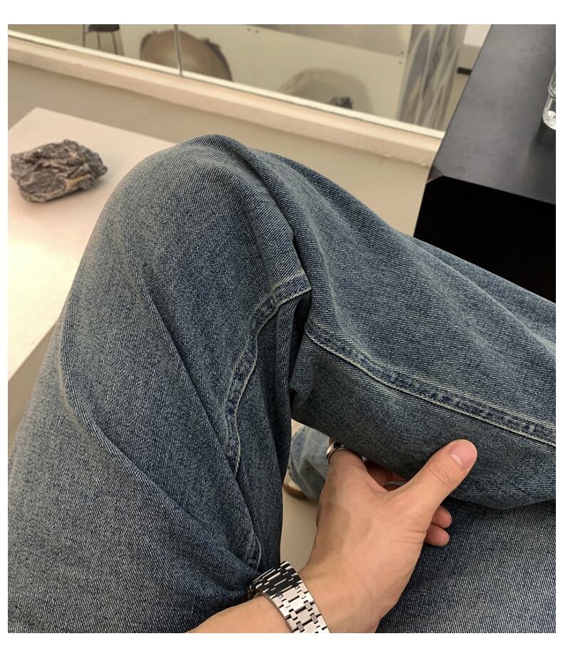ジーンズメンズインタイドハイストリートドレープルーズストレートパンツ香港風レトロカジュアルオールマッチワイドレッグパンツ BLUU73849776256