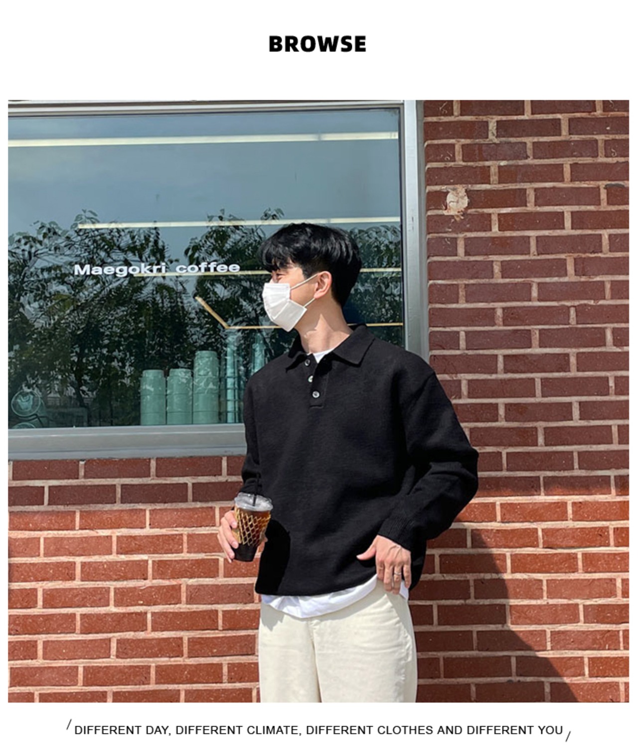 ポロセーターメンズハイエンドバージョントレンドカジュアルラペルセーター秋冬カジュアルルーズジャケットイン オータム 秋物 ウィンター 冬物 BLUU24859426523