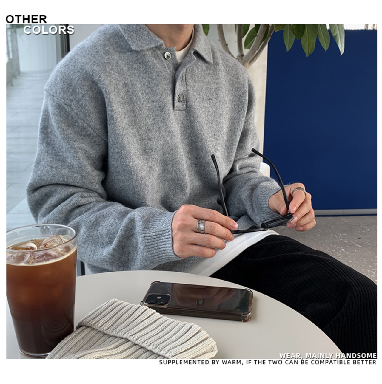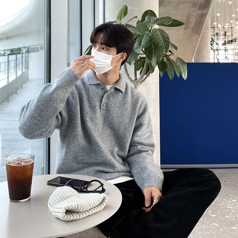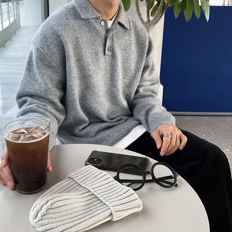 セーター メンズ 冬 ese 潮 レイジー ポロシャツ ジャケット ゆったり 万能 ラペル ニット セーター ウィンター 冬物 BLUU49040030104